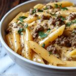 This irresistibly creamy beef pasta is perfect for cozy nights in, combining tender ground beef with a luscious, creamy sauce and perfectly cooked pasta. Quick to prepare and full of satisfying flavors, this dish will become a family favorite for any weeknight dinner.