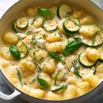 This Lemon and Basil Gnocchi recipe is a bright, fresh, and comforting dish that features gluten-free potato gnocchi cooked to perfection with sautéed zucchini, baby spinach, and a zesty lemon-parmesan sauce. Finished with fresh basil and creamy mozzarella, it offers a delightful balance of flavors that’s perfect for a quick yet elegant meal.