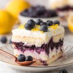 - Garnish and serve: Before serving, optionally garnish with fresh lemon zest and blueberries. Cut into 16 squares and enjoy the refreshing flavors.