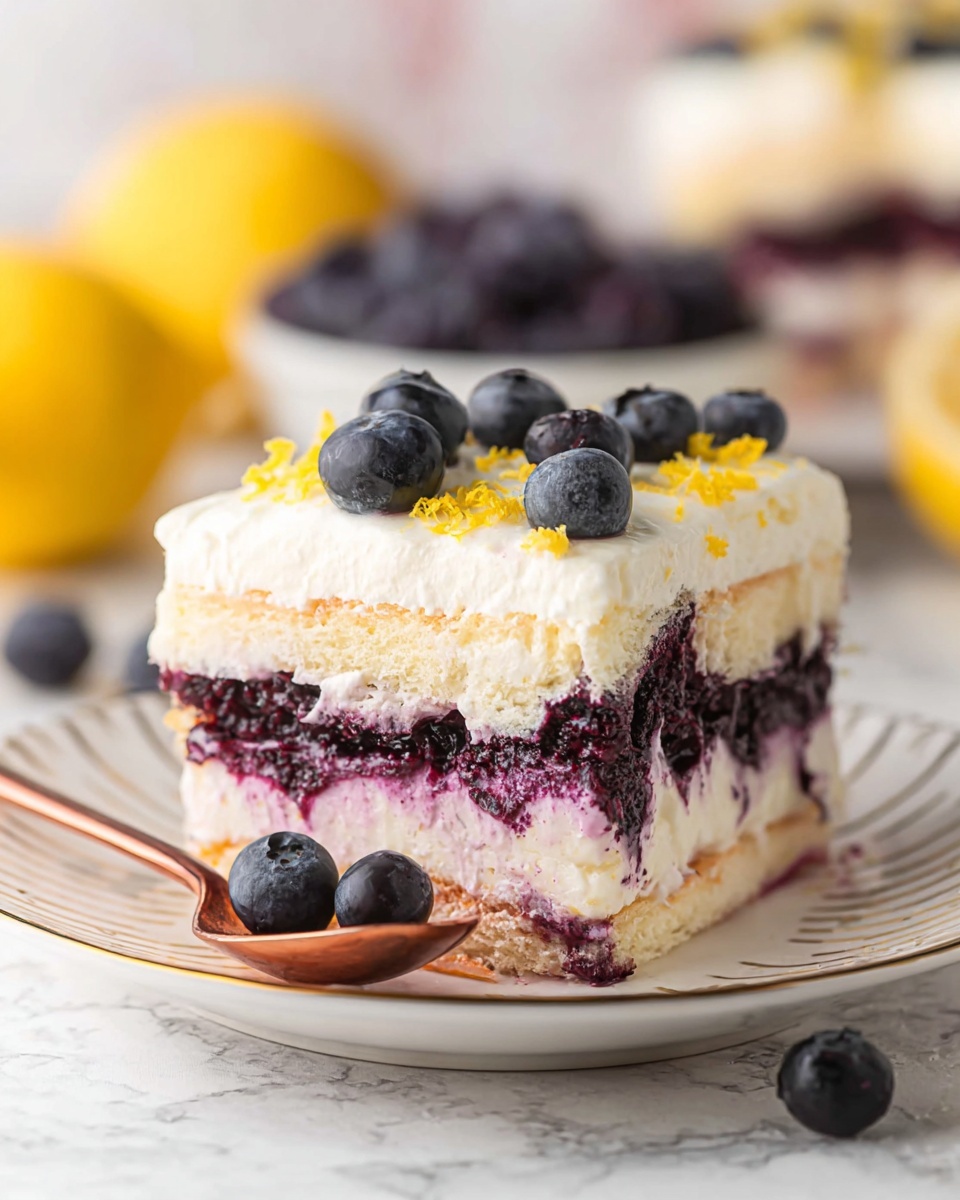 A sprinkle of vibrant lemon zest and a handful of plump, fresh blueberries instantly elevate the appearance of this dessert. These garnishes add tactile freshness and slight acidity that brighten every bite. Plus, they make it picture-perfect for any occasion.