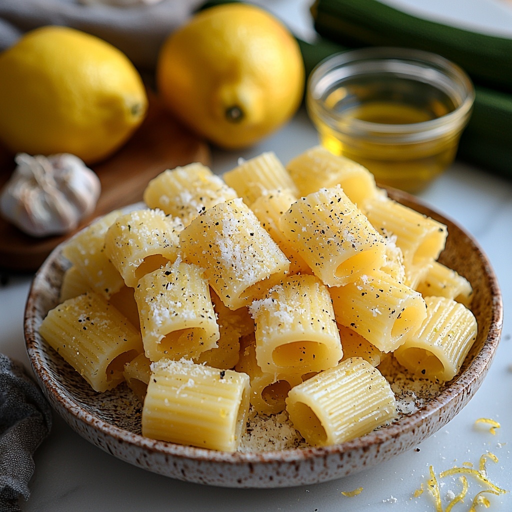 A bright and refreshing Lemon Zucchini Rigatoni recipe that combines tender pasta with sautéed zucchini, fresh lemon juice and zest, and creamy Parmesan cheese for a simple yet flavorful Italian-inspired dish perfect for a quick weeknight dinner.