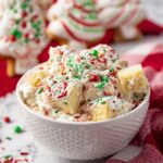 - Add toppings: Sprinkle the top of the dip with Christmas sprinkles and garnish with the remaining whole Christmas Tree Snack Cake.