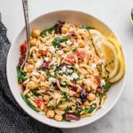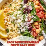 This Mediterranean Orzo Bake is a vibrant, wholesome dish combining tender orzo pasta with hearty chickpeas, tangy feta, and fresh spinach, all baked to perfection with an Italian herb seasoning. It’s a comforting, easy-to-make meal that highlights bold Mediterranean flavors, perfect for a nutritious weeknight dinner.
