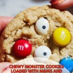Delightfully chewy Monster Cookies loaded with peanut butter, oats, and colorful M&Ms, creating the perfect sweet treat that’s both fun and satisfying. These cookies are soft in the center with a slight crisp on the edges and decorated with extra M&Ms and candy eyes for a playful twist.