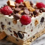 The No-Bake Cookie Dough Cheesecake Bars Recipe are delightful on their own, but adding a touch of garnish can elevate their appearance and texture even more. Try a light dusting of powdered sugar or a drizzle of caramel or chocolate sauce for extra indulgence. Fresh berries on the side add a pop of color and tangy contrast that balances the sweetness beautifully.