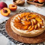 For a showstopper, serve this cheesecake in individual jars layered with caramelized peach slices and a sprinkle of crushed wafers on top. You can also arrange the peaches in a circular pattern for a pretty, rustic look or pile them high for a more abundant, indulgent effect. However you present it, your guests will be captivated.