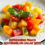 This refreshing Peach Watermelon Salad combines juicy watermelon and sweet peaches with fresh mint, honey, and a hint of lime. Enhanced with sea salt and black pepper, this vibrant fruit salad offers a perfect balance of sweetness and subtle savory notes, making it a delightful, healthy dish ideal for warm weather or light meals.
