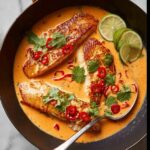 This Poached Salmon in Coconut Lime Sauce recipe features tender salmon fillets gently cooked in a fragrant, creamy coconut milk sauce infused with lemongrass, garlic, ginger, and a hint of chili. Finished with fresh lime zest and cilantro, it’s a vibrant, flavorful dish perfect served over jasmine rice or vermicelli noodles for a satisfying meal.