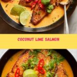 Reheat leftover salmon gently in a skillet over low heat, spooning some sauce over the top to keep it moist. Reheat the coconut lime sauce separately in a saucepan on low heat, stirring occasionally until warmed through. Combine just before serving for the freshest taste.