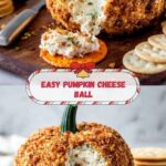 If you’re looking for a crowd-pleasing appetizer that combines creamy, savory flavors with a festive fall vibe, this Pumpkin Cheese Ball Recipe is exactly what you need. Picture a smooth blend of cream cheese and sharp cheddar infused with garlic and onion powders, brightened by fresh green onions, and then wrapped in a crunchy coat of smoky bacon and toasted pecans. The mini pumpkin stem on top gives it a charming seasonal touch. It’s easy to make, fun to serve, and absolutely delicious—guaranteed to be the centerpiece of any gathering.