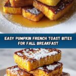 These Pumpkin French Toast Bites are a delightful twist on classic French toast, featuring bite-sized cubes of French bread soaked in a spiced pumpkin custard, then pan-fried until golden and crispy. Perfect for a fall breakfast or brunch, they are served warm with maple syrup and an optional dusting of powdered sugar for extra sweetness.