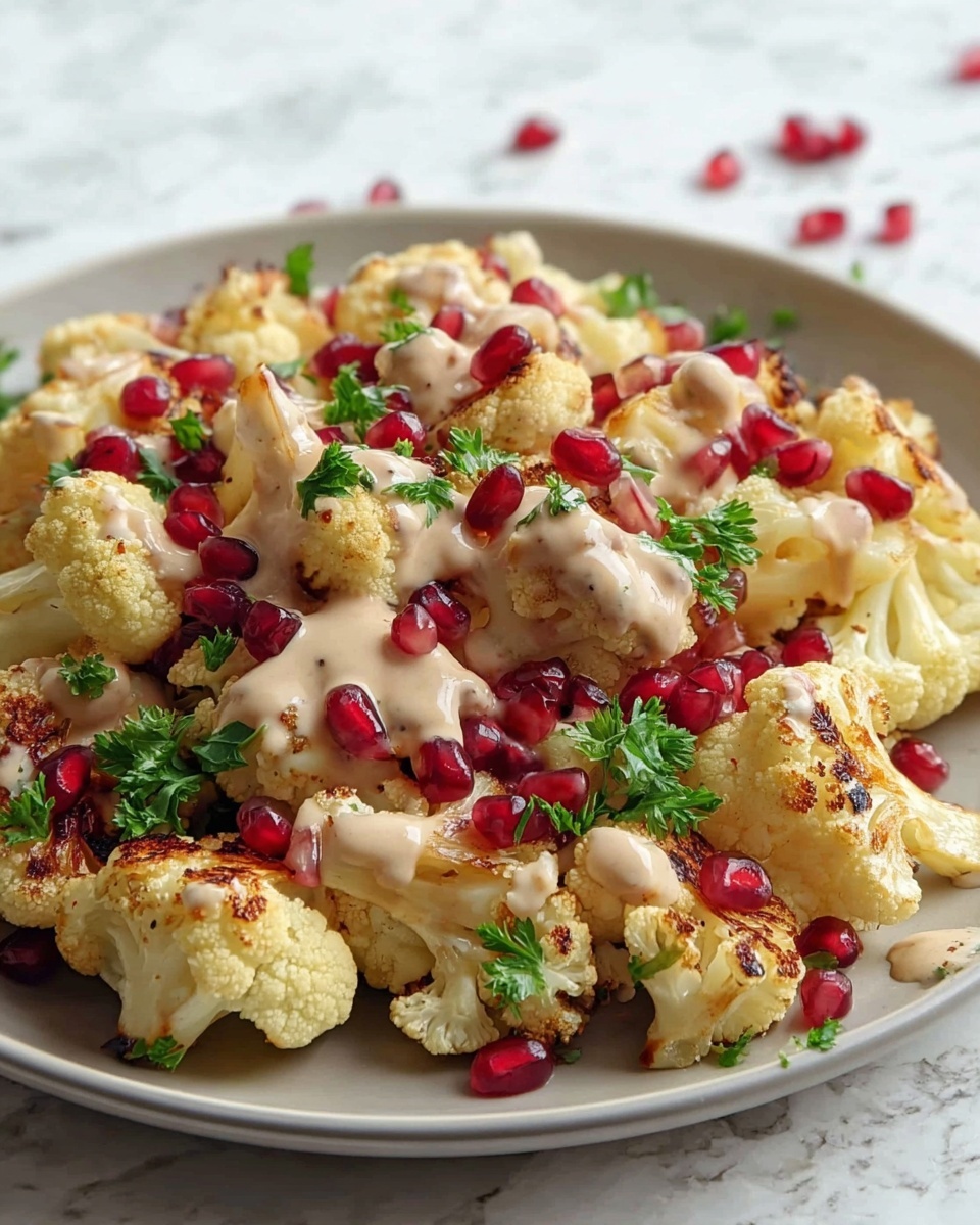 If you are looking for a vibrant dish that perfectly balances creamy, tangy, nutty, and fresh flavors, the Roasted Cauliflower with Garlic Tahini Sauce and Pomegranate Recipe is an absolute must-try. This recipe brings together tender, caramelized cauliflower roasted to perfection, drizzled with a luscious garlic tahini sauce that’s both creamy and rich. The pop of juicy pomegranate seeds adds a delightful burst of sweetness and color, while the fresh herbs finish everything off with a bright, herbaceous note. Whether you want a standout side dish or a veggie-centric main, this recipe is both comforting and exciting, promising a joyful eating experience at every bite.