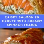Salmon En Croute is an elegant and delicious dish featuring tender salmon fillets wrapped in flaky puff pastry with a creamy, flavorful spinach and dill filling. This recipe combines sautéed spinach, cream cheese, and Dijon mustard to create a rich complement to the salmon, all enveloped in a golden, crispy crust. Perfect for a special dinner or entertaining, this dish is simple to prepare and bakes in under 30 minutes.