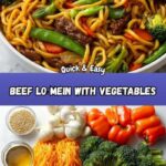 This Savory Beef Lo Mein with Vegetables is a flavorful, quick, and colorful stir-fried noodle dish featuring tender slices of beef sirloin and a vibrant mix of broccoli, carrots, bell peppers, and onions. Coated in a rich soy and oyster sauce blend, this easy-to-make recipe delivers a perfect balance of savory and fresh vegetable goodness, ideal for a satisfying weeknight dinner.