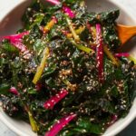 This Sesame Sautéed Swiss Chard recipe is a quick and flavorful way to enjoy nutrient-rich Swiss chard. Sautéed with toasted sesame oil, garlic, ginger, and tamari, this dish offers a delightful balance of savory and slightly spicy notes, perfect as a healthy side or light main dish.