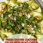 A light and refreshing Shaved Zucchini Salad featuring thinly sliced zucchini ribbons tossed with lemon zest and juice, extra virgin olive oil, and seasoned with kosher salt and freshly ground pepper. Finished with toasted pine nuts, creamy goat cheese, and fresh microgreens, this salad is perfect as a healthy appetizer or side dish.