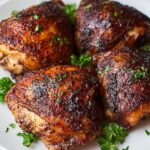 Finish by garnishing with chopped fresh parsley or thyme to add a bright, fresh contrast to the warm, savory chicken. Now you’re ready to enjoy your Simple Air Fryer Chicken Thighs That Are Juicy and Delicious Recipe!