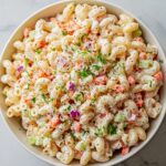 A simple and delicious macaroni salad with a creamy tangy dressing, colorful vegetables, and a refreshing crunch. Perfect for potlucks, picnics, or as a side dish for any meal.