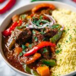 This Slow Cooked Summer Beef Casserole is a hearty and comforting dish featuring tender braising beef slowly cooked in Guinness and beef stock, enhanced with fresh summer vegetables like red and green bell peppers and zucchini. Finished with a sprinkle of parmesan cheese and fresh herbs, it’s the perfect rustic meal to enjoy any day.
