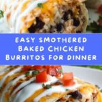 These Smothered Baked Chicken Burritos are a hearty, comforting meal featuring a flavorful blend of shredded chicken, rice, black beans, and cheese wrapped in large flour tortillas, then smothered in a creamy enchilada sauce and baked until bubbly and golden. Perfect for a family dinner or meal prep.