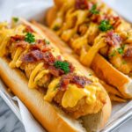 Place one warm breaded chicken tender inside each hot dog bun, then sprinkle a generous handful of shredded sharp cheddar cheese right on top. Add a hearty sprinkle of crispy bacon crumbles for that irresistible crunch and smoky flavor burst.