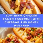 This Southern Chicken Bird Dog Sandwich features crispy breaded chicken tenders nestled inside toasted hot dog buns, topped with crispy bacon crumbles and sharp cheddar cheese, served with honey mustard for a perfect blend of savory and sweet flavors. It’s a quick and satisfying sandwich perfect for lunch or a casual dinner.
