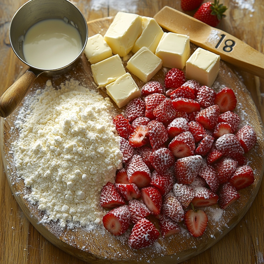 Keeping the ingredients simple yet thoughtfully selected is key to nailing this recipe. Each component plays its part—from the all-purpose flour giving the scones their tender crumb, to the cold butter which ensures flakiness, and of course, the fresh strawberries that add vibrant color and juicy flavor.