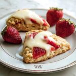 A simple dusting of powdered sugar can add an elegant touch, but a spread of clotted cream or whipped cream alongside really elevates these scones. Fresh strawberry slices on top add freshness and pop visually, making every bite feel special.
