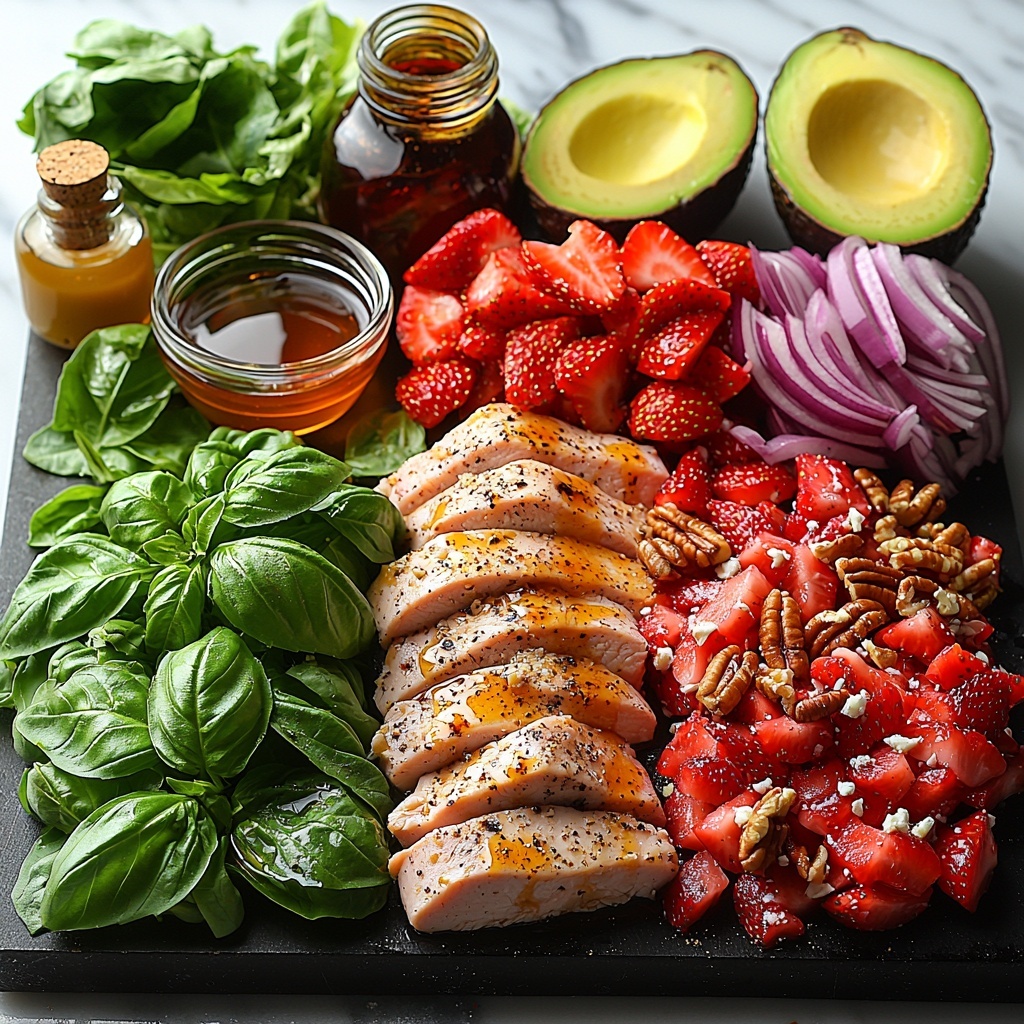 Gathering these simple yet vibrant ingredients is the first exciting step because each one plays a key role in delivering a rainbow of textures and flavors. From the fresh basil that perfumes our vinaigrette to the sweet strawberries and creamy feta, every component shines in this salad.