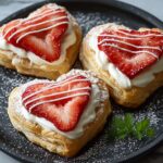 These delightful Strawberry Puff Pastry Hearts are a charming and delicious treat perfect for any occasion. Made with flaky puff pastry and sweet strawberry jam, these easy-to-make pastries bake to golden perfection and are dusted with powdered sugar for a beautiful finish. Ideal as a dessert or snack, they offer a perfect balance of buttery, crispy pastry and fruity sweetness.