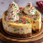 Carefully remove the cheesecake from the springform pan and place it on a serving dish. Now comes the fun part — decorate with a generous swirl of whipped cream, a sprinkle of sugar sprinkles for some festive sparkle, and fresh berries that bring bright, juicy pops to each bite. Your Sugar Cookie Cheesecake – A Sweet and Creamy Dessert Delight Recipe is now ready to wow everyone at the table!