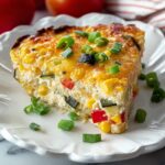 This Summer Garden Crustless Zucchini Pie Recipe relies on simple, fresh ingredients that each play an essential role. From the sautéed garlic and green onions that bring a fragrant base to the freshness of tomatoes and sweet corn adding pops of color and texture, to the eggs and cheese that hold everything together with creamy richness—you’ll be amazed how these humble ingredients transform into a stunning, wholesome dish.