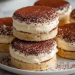 While the cookies cool completely, whisk together 2 tablespoons unsweetened cocoa powder and 1 tablespoon powdered sugar. Sift this over your cooled cookies for that classic tiramisu cocoa dusting, adding both visual appeal and a touch of bittersweet balance to the sweetness below.
