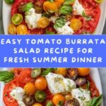 A fresh and vibrant Tomato Burrata Salad featuring heirloom and cherry tomatoes, fresh basil, creamy burrata cheese, and a flavorful dressing of olive oil and balsamic vinegar. Perfect as a light appetizer or side dish, this no-cook salad highlights the natural sweetness of tomatoes paired with rich burrata for a delightful Mediterranean-inspired dish.