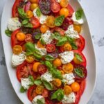 A fresh and vibrant Tomato Burrata Salad featuring heirloom and cherry tomatoes, fresh basil, creamy burrata cheese, and a flavorful dressing of olive oil and balsamic vinegar. Perfect as a light appetizer or side dish, this no-cook salad highlights the natural sweetness of tomatoes paired with rich burrata for a delightful Mediterranean-inspired dish.