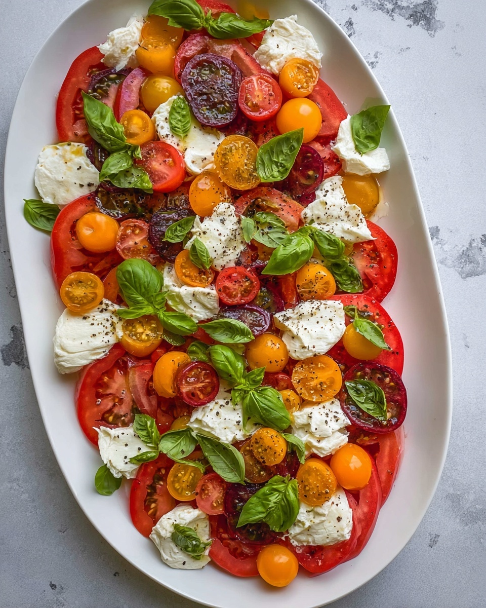 For a stunning presentation, layer the ingredients in individual glass bowls or on long wooden boards for a rustic, shareable experience. Alternatively, serve the salad over a bed of baby arugula or mixed greens to add a peppery undertone and more texture variety.