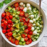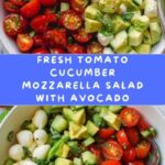If you have any leftovers from your Tomato Cucumber Mozzarella Salad Recipe, store them in an airtight container in the refrigerator. However, to preserve the freshness of the cucumber and avocado, it’s best eaten within 1-2 days. Note that the salad may release some juice as it sits, so give it a gentle toss before serving again.