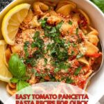 This Tomato Pancetta Pasta is a savory and comforting Italian-inspired dish featuring crispy pancetta, rich tomato sauce, and perfectly cooked pasta. The combination of sautéed onions, garlic, and canned plum tomatoes creates a flavorful sauce finished with parmesan cheese and fresh herbs, making it a quick and satisfying meal for any occasion.