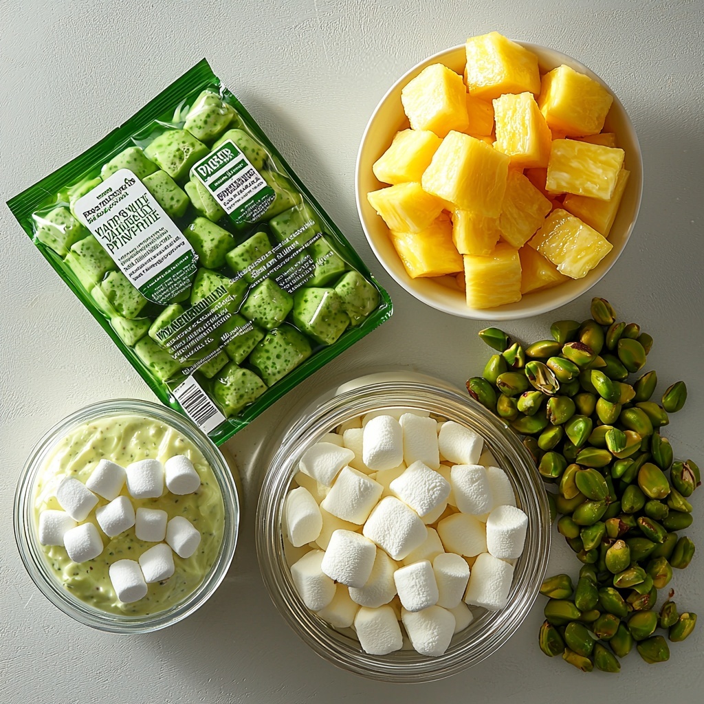 Gathering the right ingredients for the Traditional Watergate Fruit Salad with Pistachios Recipe is simple and straightforward. Each element plays a crucial part in building the dish’s vibrant taste and texture.