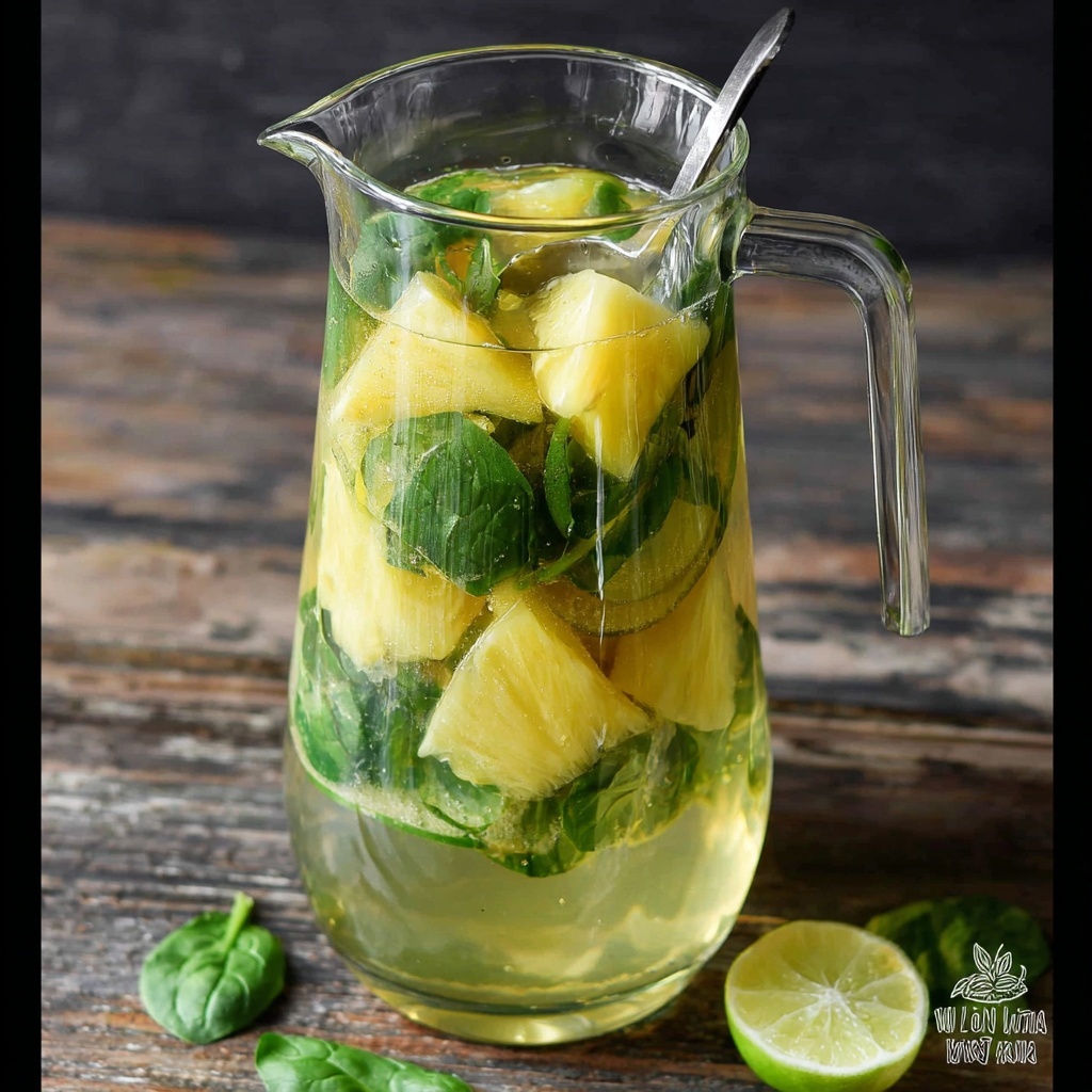 Enhance the vibrant look and flavor by garnishing with chunks of fresh pineapple and thin lime slices as a natural embellishment. You can also add a sprig of basil for a pop of green and an inviting aroma that hints at what’s inside the glass.