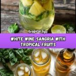 This Tropical White Wine Sangria is a refreshing and vibrant cocktail perfect for warm weather gatherings. Featuring fresh pineapple, lime, and basil combined with pineapple rum and chilled Vinho Verde wine, this sangria offers a perfect balance of tropical sweetness and herbal notes. Sparkling water adds a bubbly finish, making it a delightful drink for summer fiestas or a relaxing afternoon.