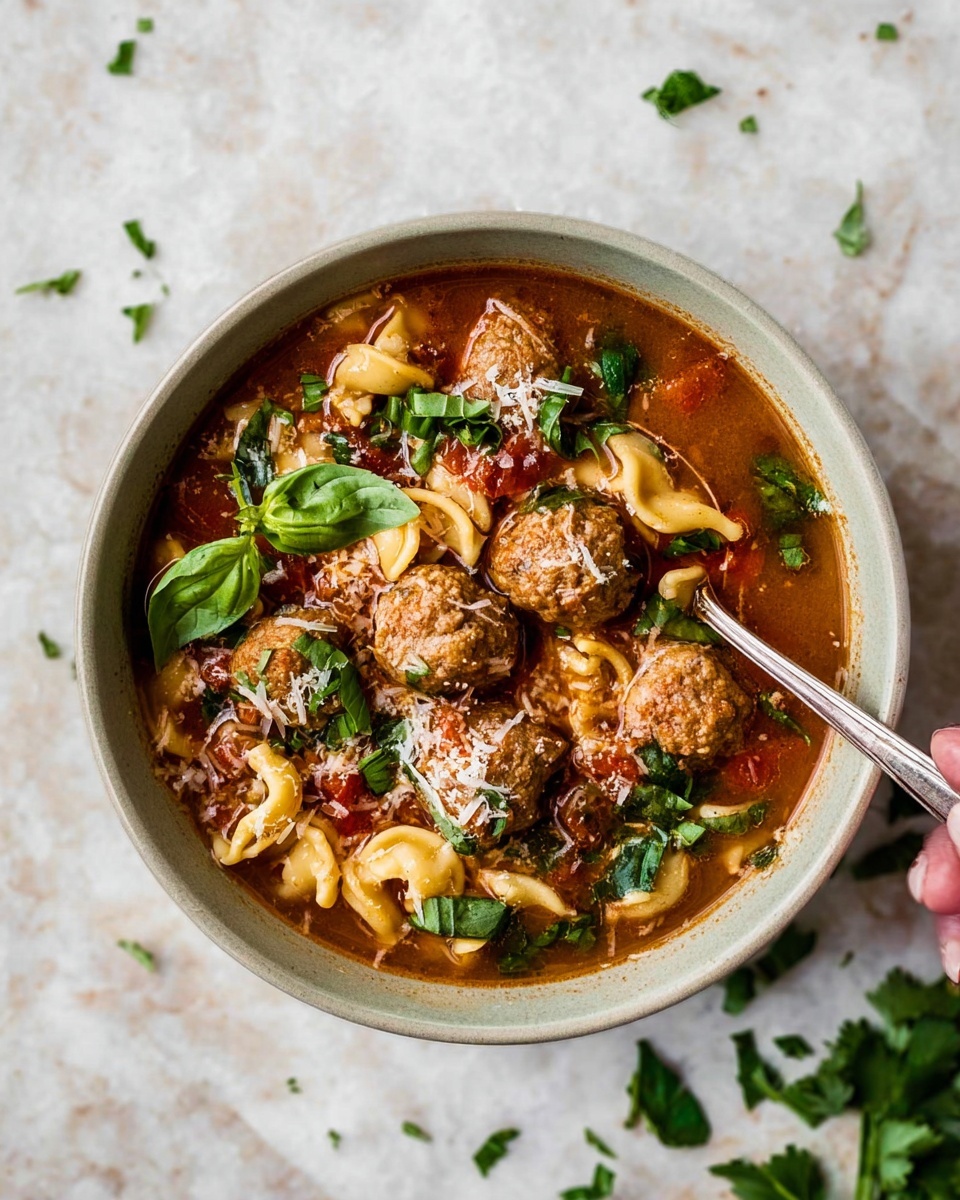 For a fun twist, serve the soup in individual bread bowls for an impressive rustic presentation. You can also layer the meatballs and pasta in the bottom of deep soup mugs and ladle the broth on top for a visually appealing layered effect. Adding a few fresh basil leaves on the surface just before serving invites that irresistible aroma right to the table.