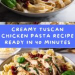This creamy Tuscan chicken pasta recipe combines tender chicken breasts, sun-dried tomatoes, fresh spinach, and Parmesan cheese in a rich, flavorful sauce served over perfectly cooked pasta. A comforting and elegant Italian-inspired dish that comes together in under 45 minutes, perfect for a weeknight dinner or special occasion.