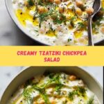 A refreshing and healthy Tzatziki Chickpea Salad combining creamy Greek yogurt, crunchy cucumbers, and hearty chickpeas, flavored with fresh dill, garlic, and capers. Perfect as a light lunch or a side dish, this no-cook salad benefits from resting time to meld the flavors for a deliciously tangy Mediterranean-inspired dish.