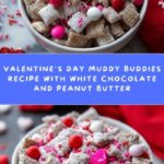 Valentine’s Day Muddy Buddies are a sweet, crunchy, and festive treat perfect for celebrating love and friendship. Made with crispy Chex cereal coated in a luscious white chocolate and peanut butter mixture, then dusted with powdered sugar and adorned with colorful Valentine’s-themed M&M’s, mini marshmallows, and heart-shaped sprinkles, these snacks are both delightful to look at and delicious to eat. This no-bake recipe is quick and easy to prepare, making it an ideal festive snack for parties or gifting.