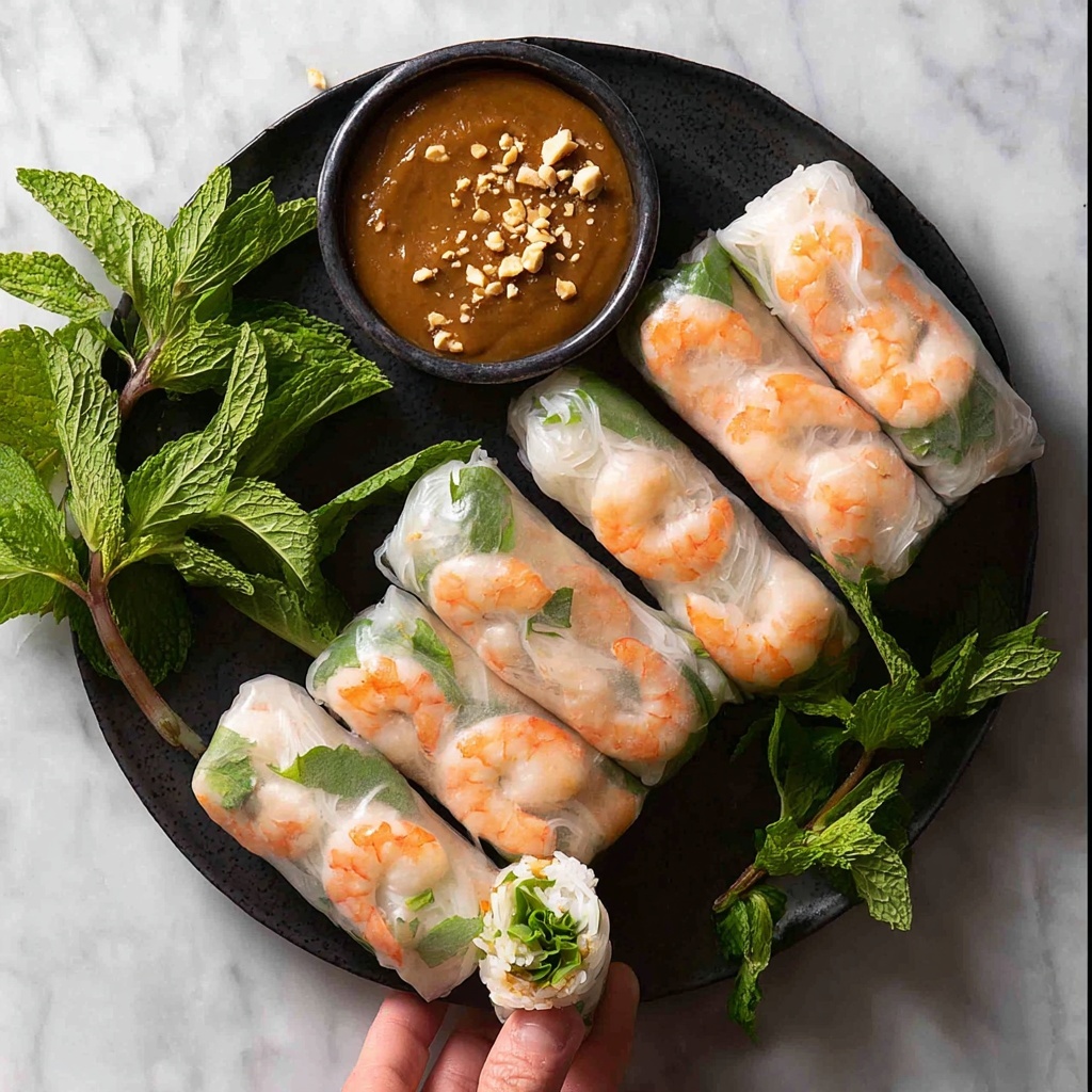 - Final Look and Serve: The completed rice paper rolls should look attractive with prawns and mint leaves visible on the smooth side, and the seam positioned neatly on the side or underside. Serve immediately with the peanut dipping sauce.