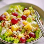 A refreshing and crunchy Waldorf Salad featuring crisp apples, juicy grapes, toasted walnuts, and celery, all tossed in a tangy Greek yogurt and lemon juice dressing. Perfect as a light side dish or a healthy snack, this classic salad combines sweet and savory flavors with a satisfying texture.