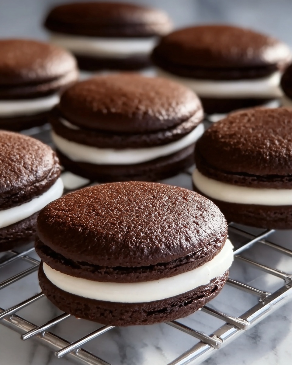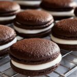 Delight in these classic Whoopie Pies featuring soft, cocoa-flavored cookies sandwiched with a creamy marshmallow and butter frosting. Perfectly sized for a sweet treat, these homemade pies offer a nostalgic dessert that’s both fluffy and rich.