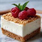 Mix about 2 ¼ cups of the graham cracker crumbs with your melted butter until every crumb is coated and holds together nicely. Press this mixture firmly into the bottom of a 9×13-inch pan. This forms a sturdy and buttery foundation for your cheesecake. Save the remaining crumbs—you’ll sprinkle those on top at the end for an irresistible crunch.